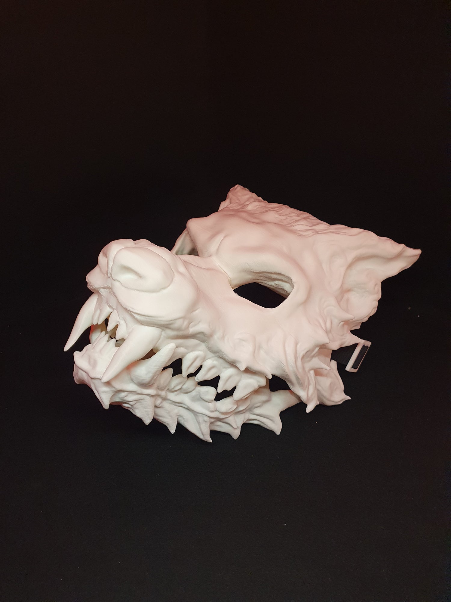 Become the big bad wolf with this wolf mask! Based on my wolf skull/skulldog mask, this mask is for those who like the skull mask but rather have a 'living' version of it. When the full mask is worn, the jaw hinges at the same position as the human jaw allowing you to open and close the mask by opening or closing your own mouth.